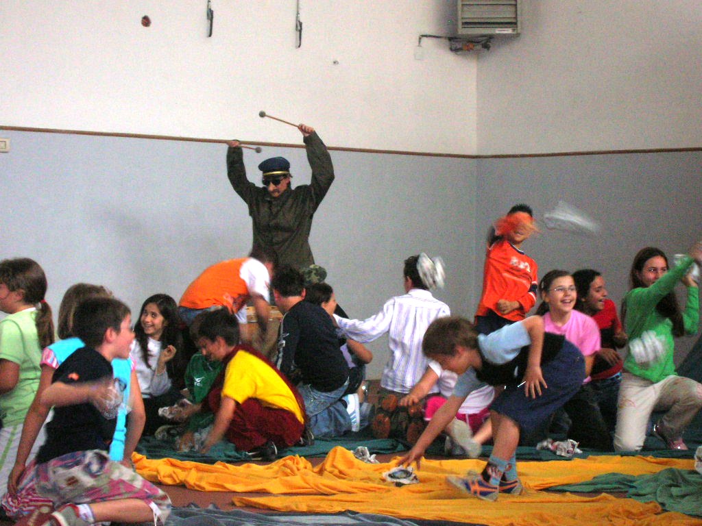 Arriva la guerra... e tutti giù per terra, una azione teatrale con la partecipazione degli spettatori ideata e scritta da Mario Fraschetti interpretata dagli attori del Teatro Studio Daniela Marretti, Luca Pierini Enrica Pistolesi | |